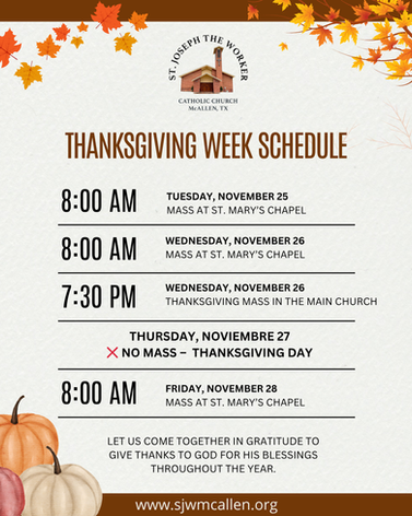 Friday:8:30 AM to 4:30 PM Chapel, ask parish office staff to open Chapel.